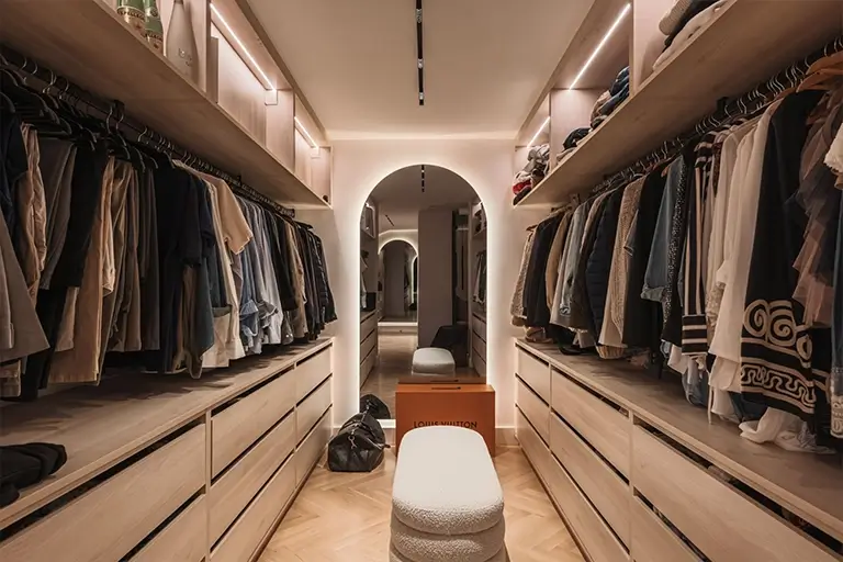 La suite principal es especialmente impresionante, con 16 metros lineales de armarios a medida, una cama sueca de calidad hotelera de 210 cm y un baño en suite con doble ducha de mano y ducha de lluvia de gran tamaño. Además, cuenta con una oficina oculta y un trastero adicional de 20 m², que aporta funcionalidad sin comprometer la estética del espacio. Toda la iluminación es regulable, y el apartamento dispone de suelo radiante en todos los baños y un sistema de climatización por zonas Airzone, garantizando el máximo confort.